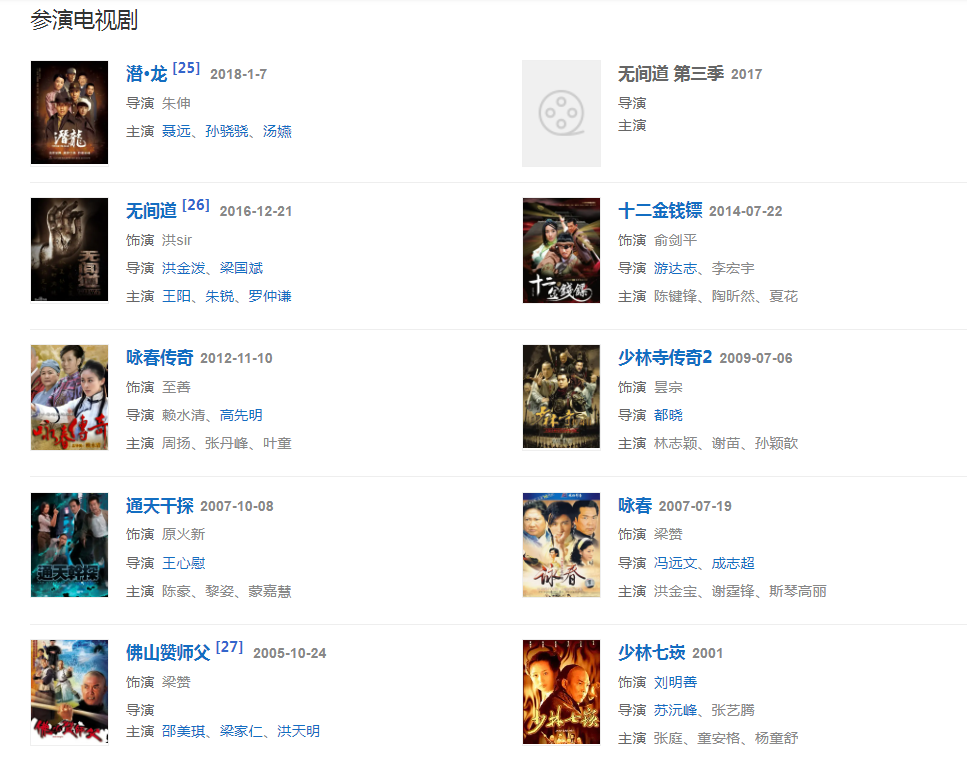 代表作品:詠春傳奇、A計(jì)劃、雜家小子